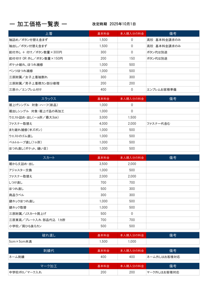 お直し専門スタッフ常駐。お急ぎ対応もお任せください。